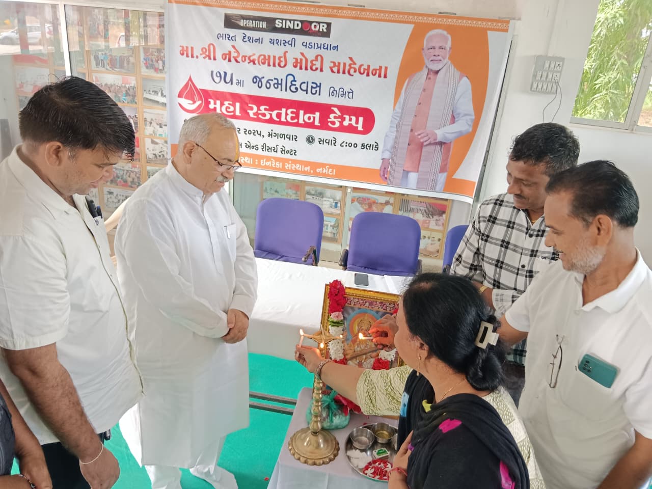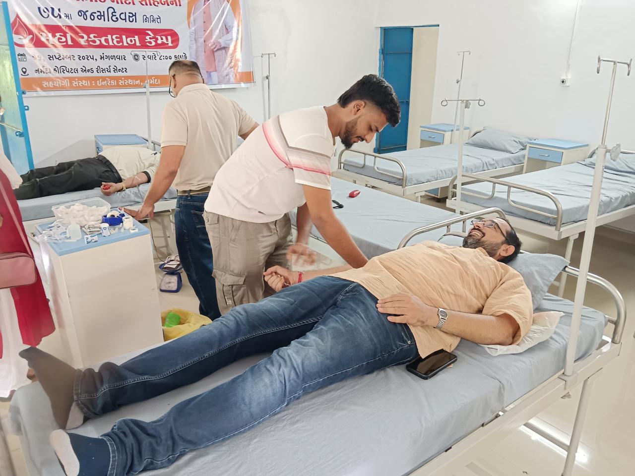 Today on the eve of the 75th Birthday Anniversary of our world leader Hon’ble Prime Minister of India Sh Narendra Modi ji celebrated Mega Blood Donation Campaign of Various Teaching related mandals of Gujarat state and INRECA Sansthan’s run Narmada Hospitals & Research Center (NHRC) was also one center among them where 107 blood units are collected out of 500 odd donors.