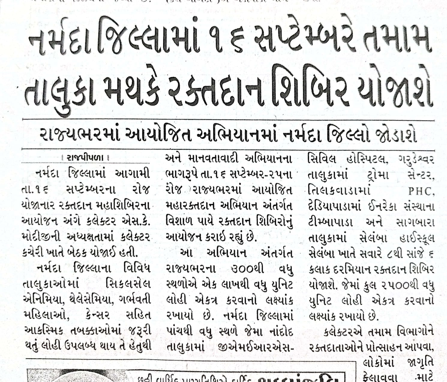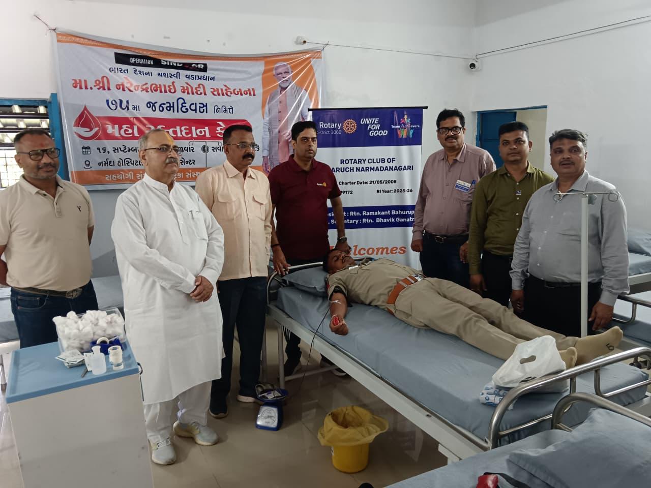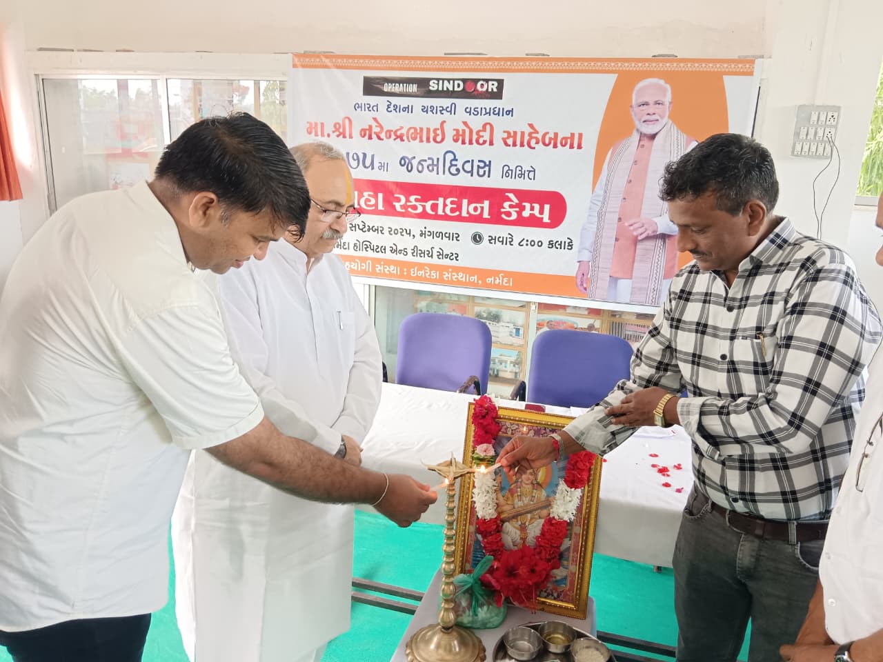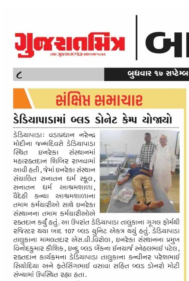 Today on the eve of the 75th Birthday Anniversary of our world leader Hon’ble Prime Minister of India Sh Narendra Modi ji celebrated Mega Blood Donation Campaign of Various Teaching related mandals of Gujarat state and INRECA Sansthan’s run Narmada Hospitals & Research Center (NHRC) was also one center among them where 107 blood units are collected out of 500 odd donors.